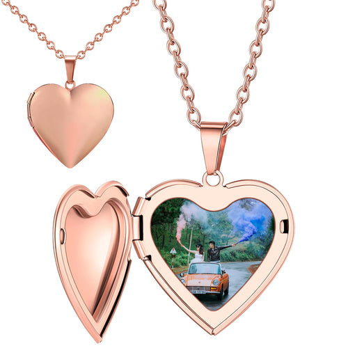 Custom Couples Necklace with Picture - Personalized Couple Photo Necklace Double-sided Engraved Text Stainless Steel Customized Valentines Gifts for Loved One -