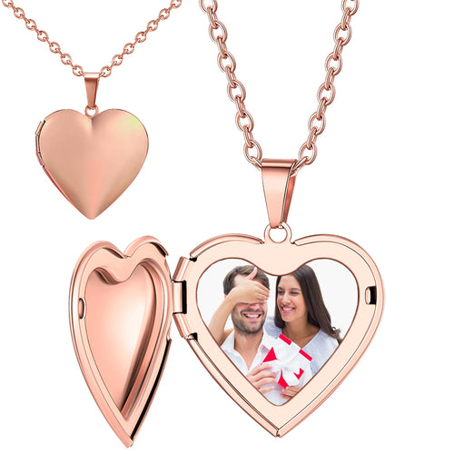 925 Sterling Silver Heart Photo Locket Pendant Necklace with 18" Chain -