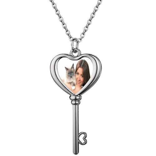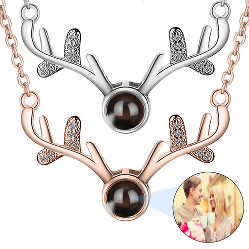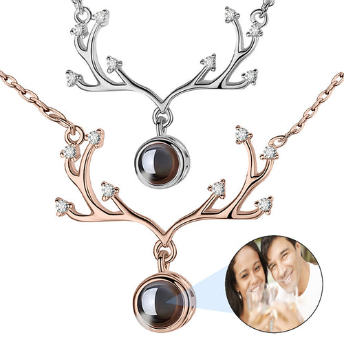 David Star Projection Photo Necklace in / Silver / Rose , CZ Personalized Photo Necklace Sterling Silver Custom Girlfriend Choker -