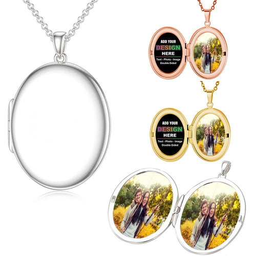 Angel Wings Oval Locket, Personalized Gifts, Memorial Photo Necklace, Engraved Locket?With Photo -