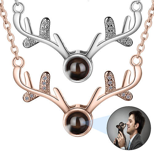 Pet Ears Projection Photo Necklace of Dog Cat in / Silver / Rose , Personalized Custom Family Dainty Cute Pet Photo Necklace -