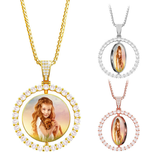 Photo Engraved Plated Large Round Necklace -